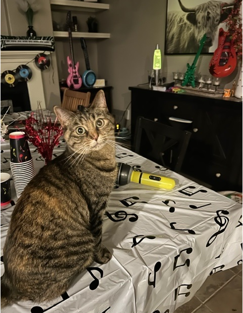 Rosie is a love bug and is ready to give headbutts to anyone who needs them. When Debi is working from home, Rosie is always asleep on the couch behind her. While Rosie's favorite place is someone's lap, she is always up to chasing one of the other cats around and knows when the refrigerator door opens, that means there is a good chance she is going to get some cream cheese!